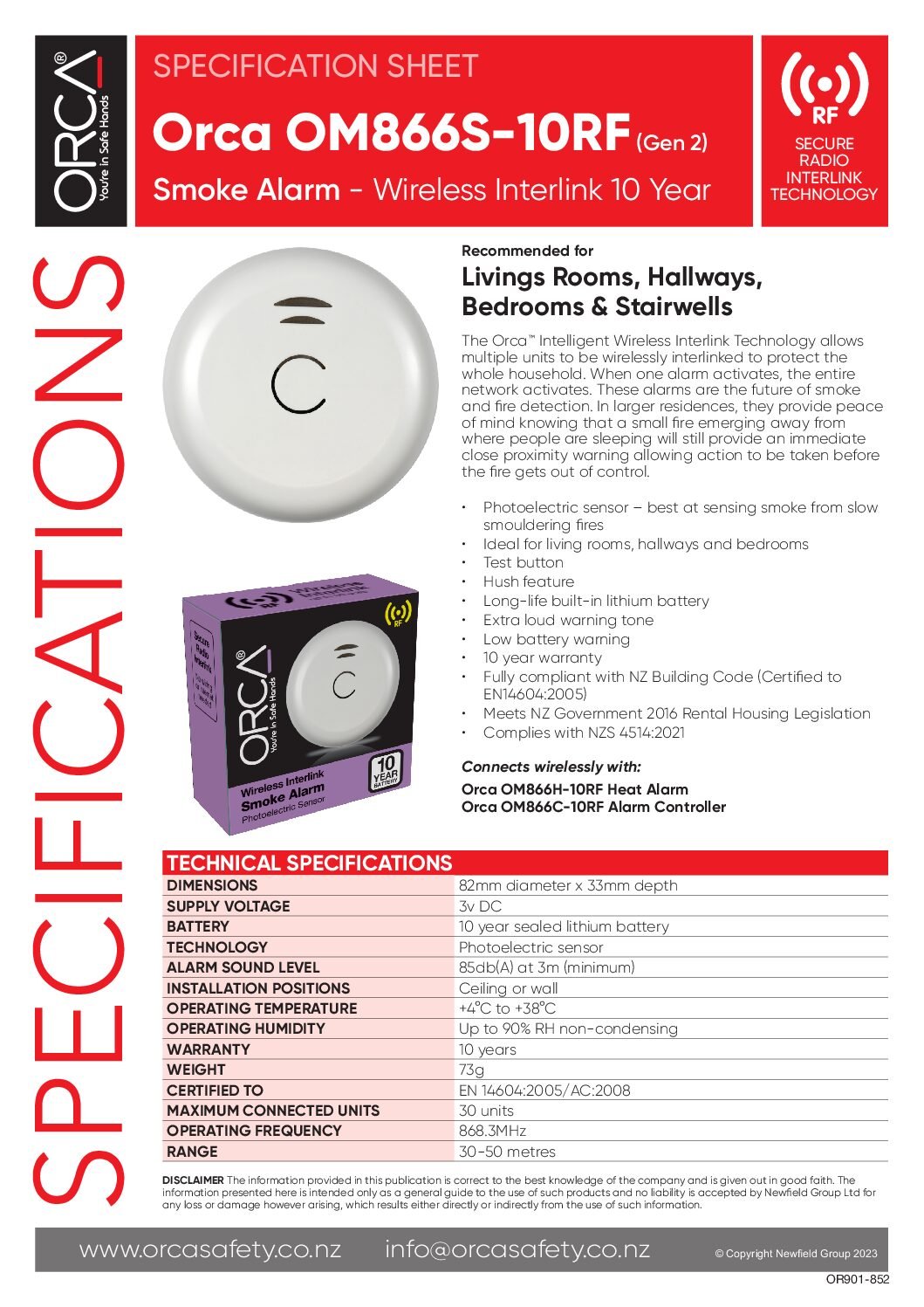 Orca 10 Year Wireless Interlink Smoke Alarm
